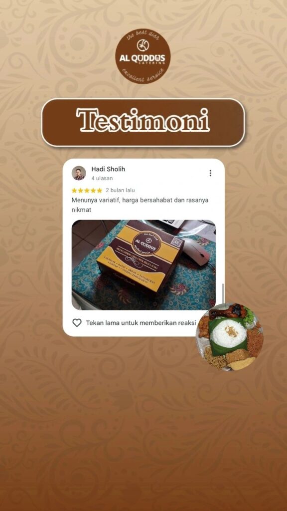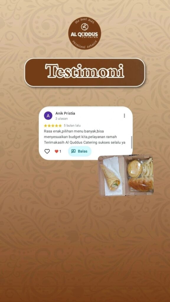 Jika Anda sedang mencari catering yang bisa diandalkan, terjangkau, dan tetap menjaga kualitas rasa, Al Quddus Catering siap membantu. Silakan jelajahi menu dan layanan kami, dan hubungi kami kapan saja untuk konsultasi kebutuhan acara Anda.